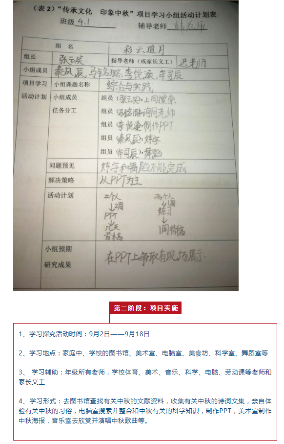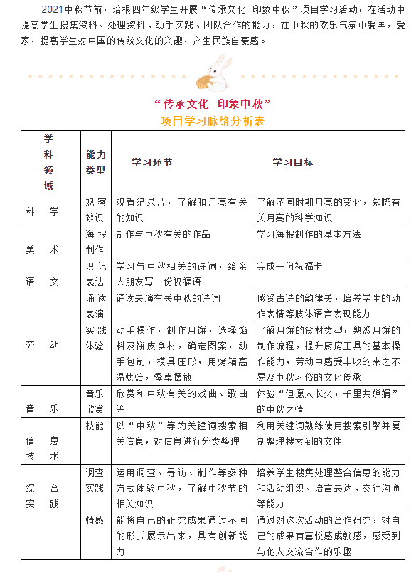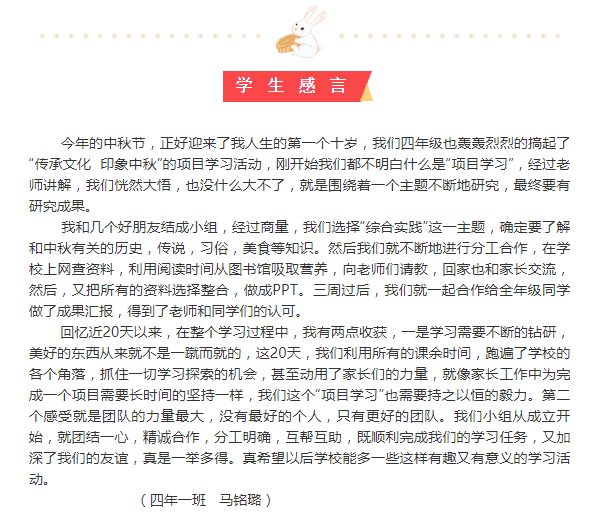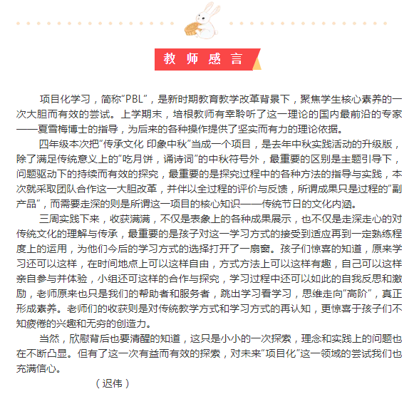 传承文化 印象中秋 ——四年级项目化学习活动纪实