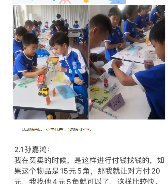 二年级数学活动——“班级旧物市场”