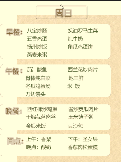 培根一周食谱10月8日-10月14日