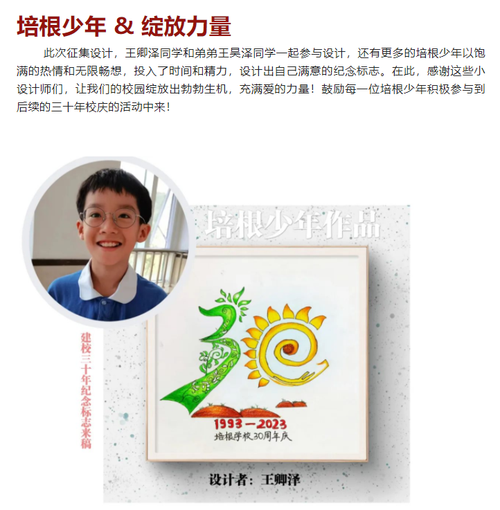 培根学校建校三十周年纪念标志诞生啦!