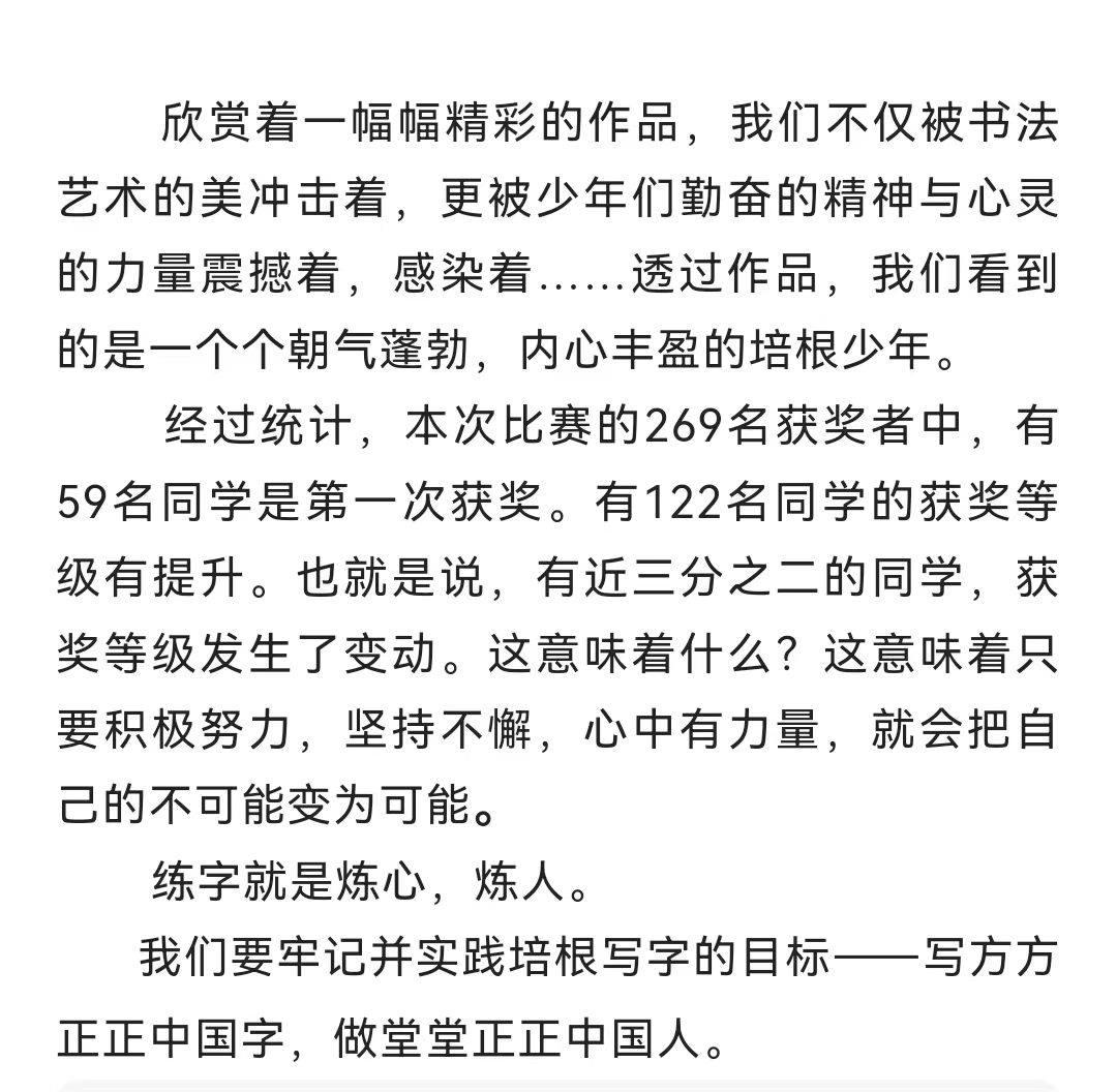 写方方正正中国字,做堂堂正正中国人——寒假写字大赛颁奖
