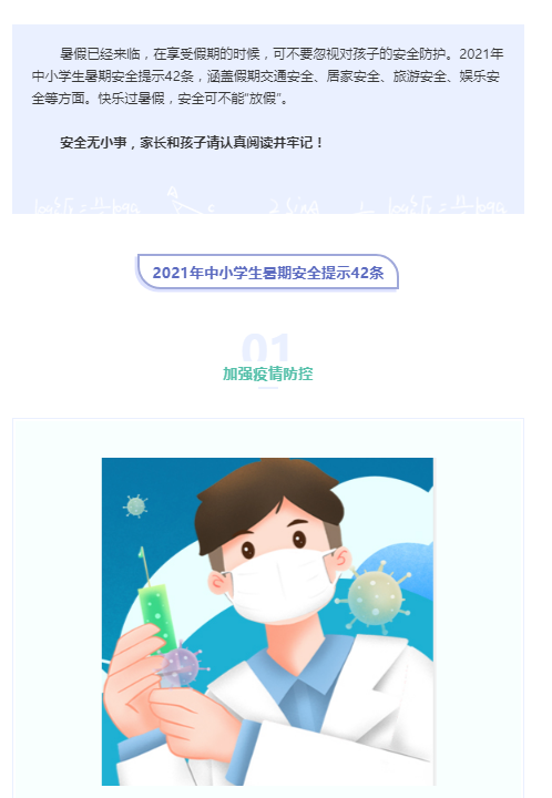 2021年中小学生暑期安全提示来了!